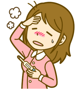 だるかったり、頭痛、喉痛、體痛があるときは微熱が出ていることがあります。