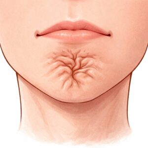 オトガイの緊張(梅干しのようなシワ)